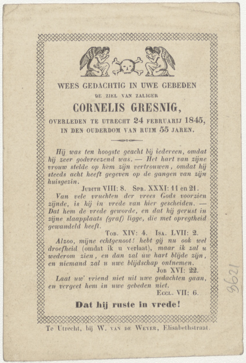 Christus, help ons (Frans), kz. Bid voor ziel Gresnig (+1845) Utrecht