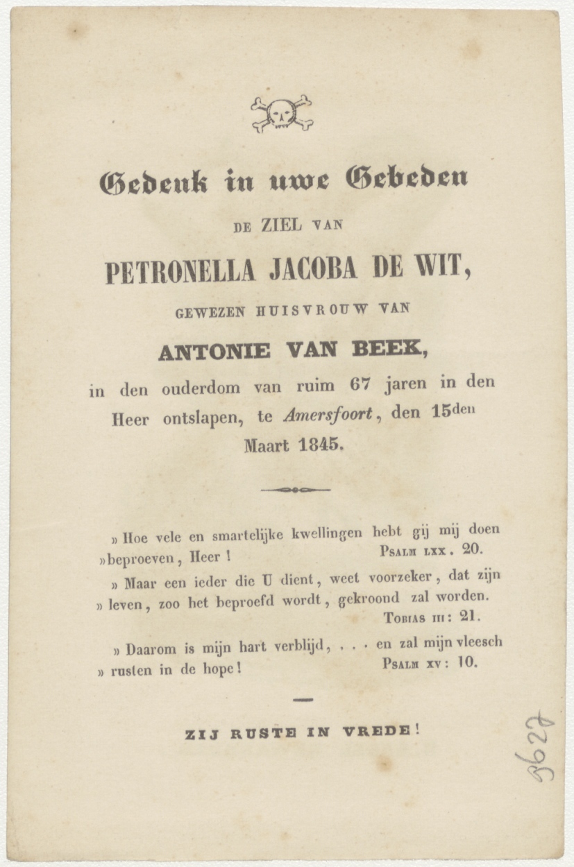 H. Engelbewaarder, kz. Bid voor ziel Van Beek-de Wit (+1845) Amersfoort