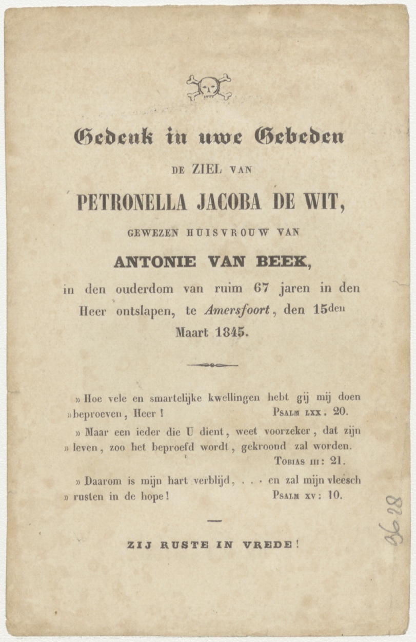 H. Familie, kz. Bid voor ziel Van Beek-de Wit (+1845) Amersfoort