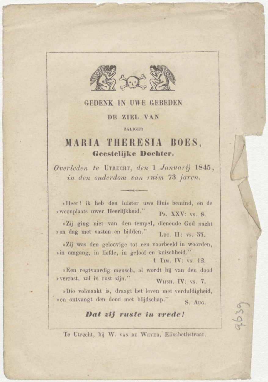 Vrouwen aan het lege graf van Christus (Frans), kz. Religieus; bid voor ziel Maria Boes (+1845) geestelijk dochter Utrecht