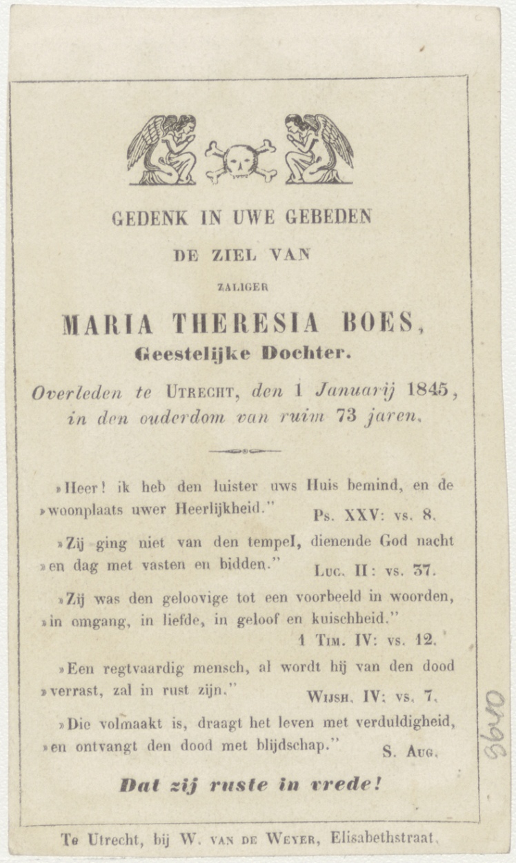 Passiescène (13e statie): Christus wordt van het kruis gehaald (Frans), kz. Religieus; bid voor ziel Maria Boes (+1845) geestelijk dochter Utrecht