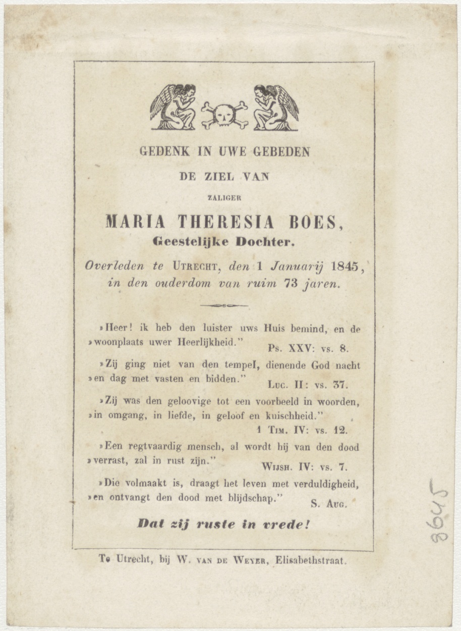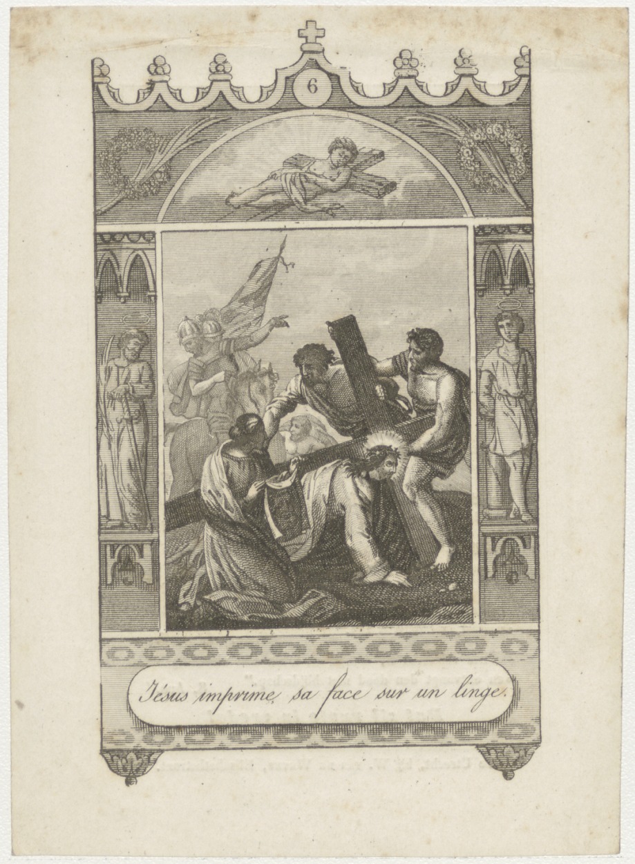 Passiescène (6e statie): Christus veegt gezicht af, Veronicadoek, kz. Religieus; bid voor ziel Maria Boes (+1845) geestelijk dochter Utrecht