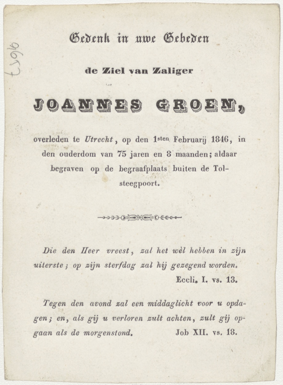 Door het geloof alleen kan men de eeuwigheid verdienen, kz. Bid voor ziel Groen (+1846) Utrecht