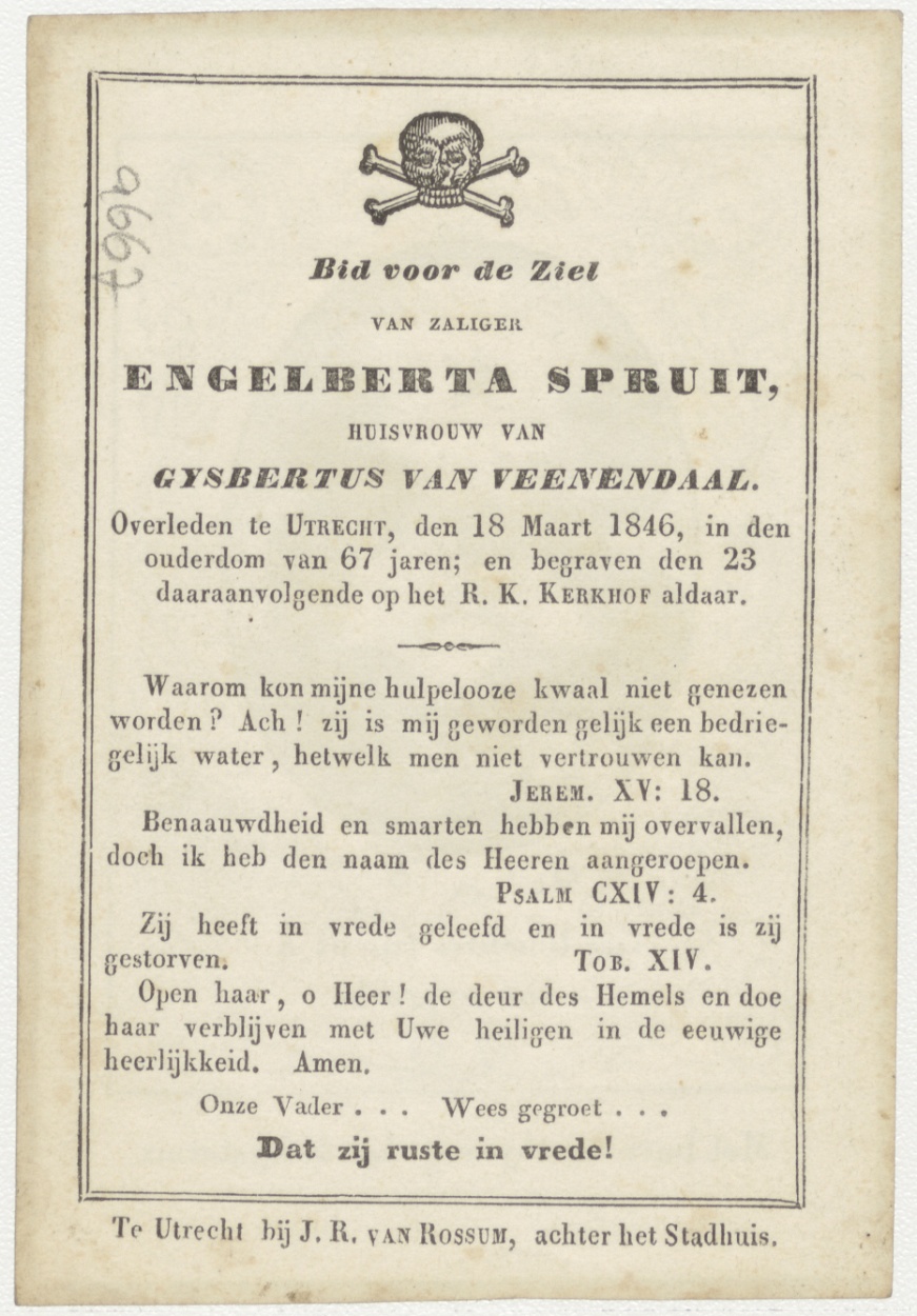 Met hare verschijning vlugt de duysternis, kz. Bid voor ziel Spruit-van Veenendaal (+1846)