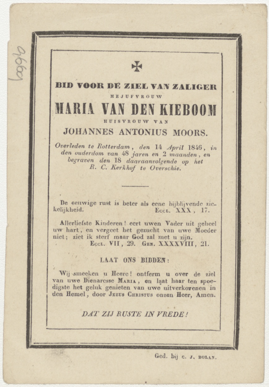 H. Agatha, kz. Bid voor ziel Moors-van den Kieboom (+1846) Rotterdam