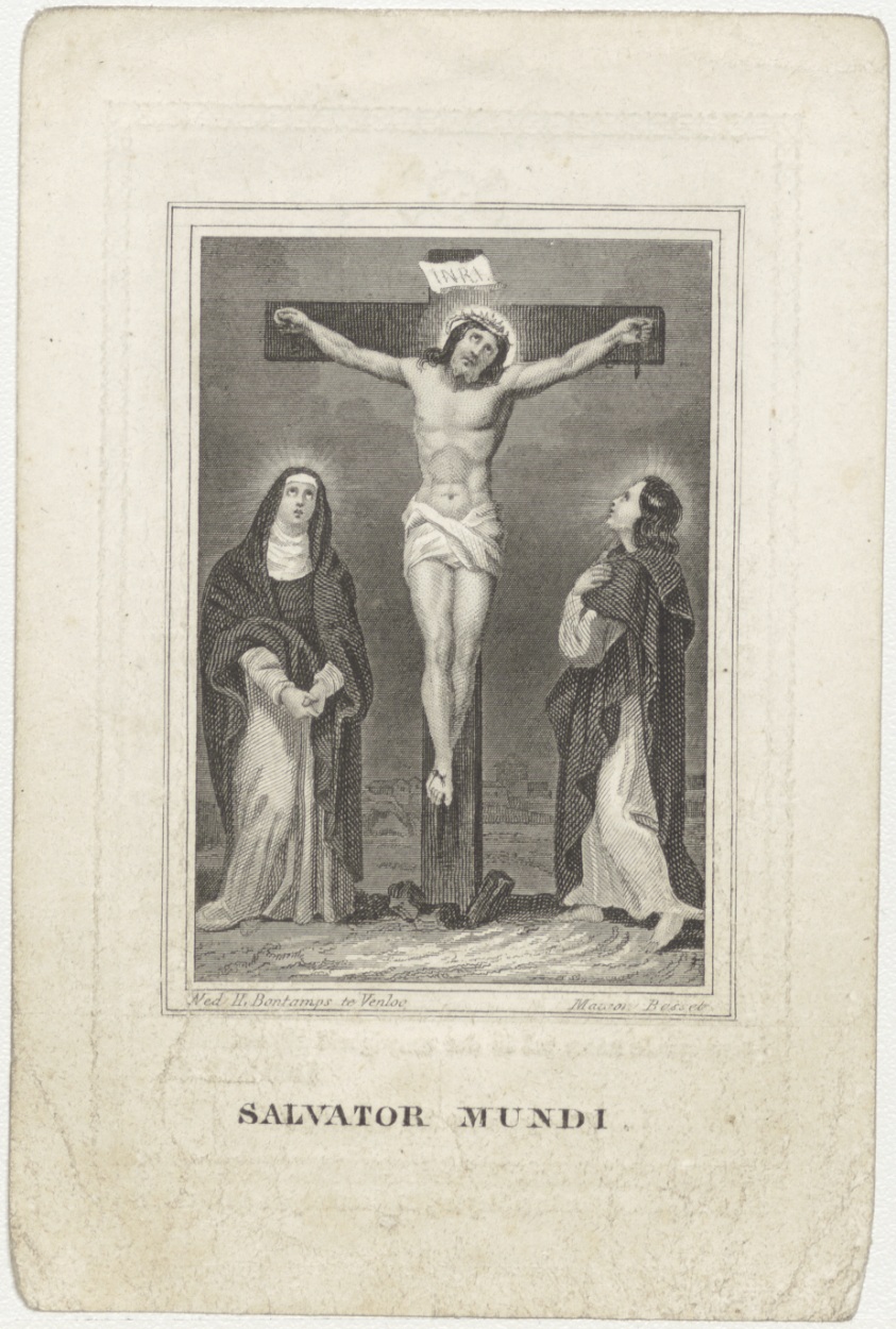 Salvator Mundi, met Johannes en Maria (Frans), kz. Bid voor ziel Guddé-Nieuwenhuizen (+1846) Hilversum
