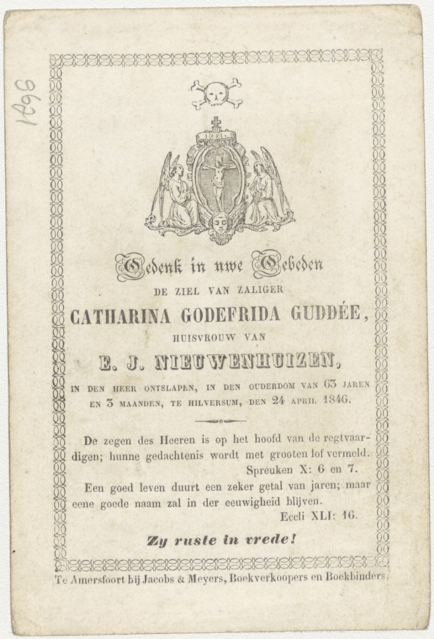 Die Christus volgt wandelt in geen duisternisen; Christumet kruis, kz. Bid voor ziel Guddé-Nieuwenhuizen (+1846) Hilversum