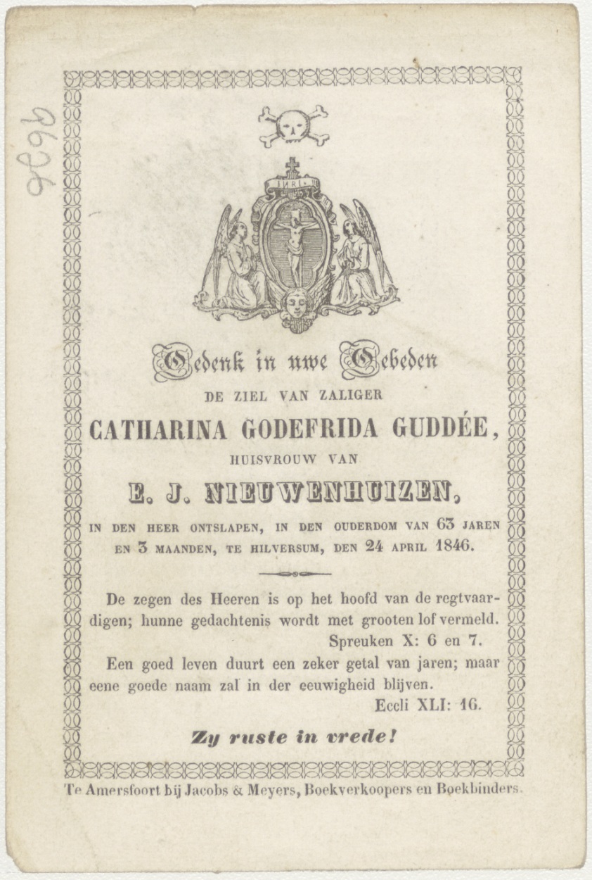 H. Familie (Frans); Maria, Elisabeth, Joannes en Christuskind, kz. Bid voor ziel Guddé-Nieuwenhuizen (+1846) Hilversum