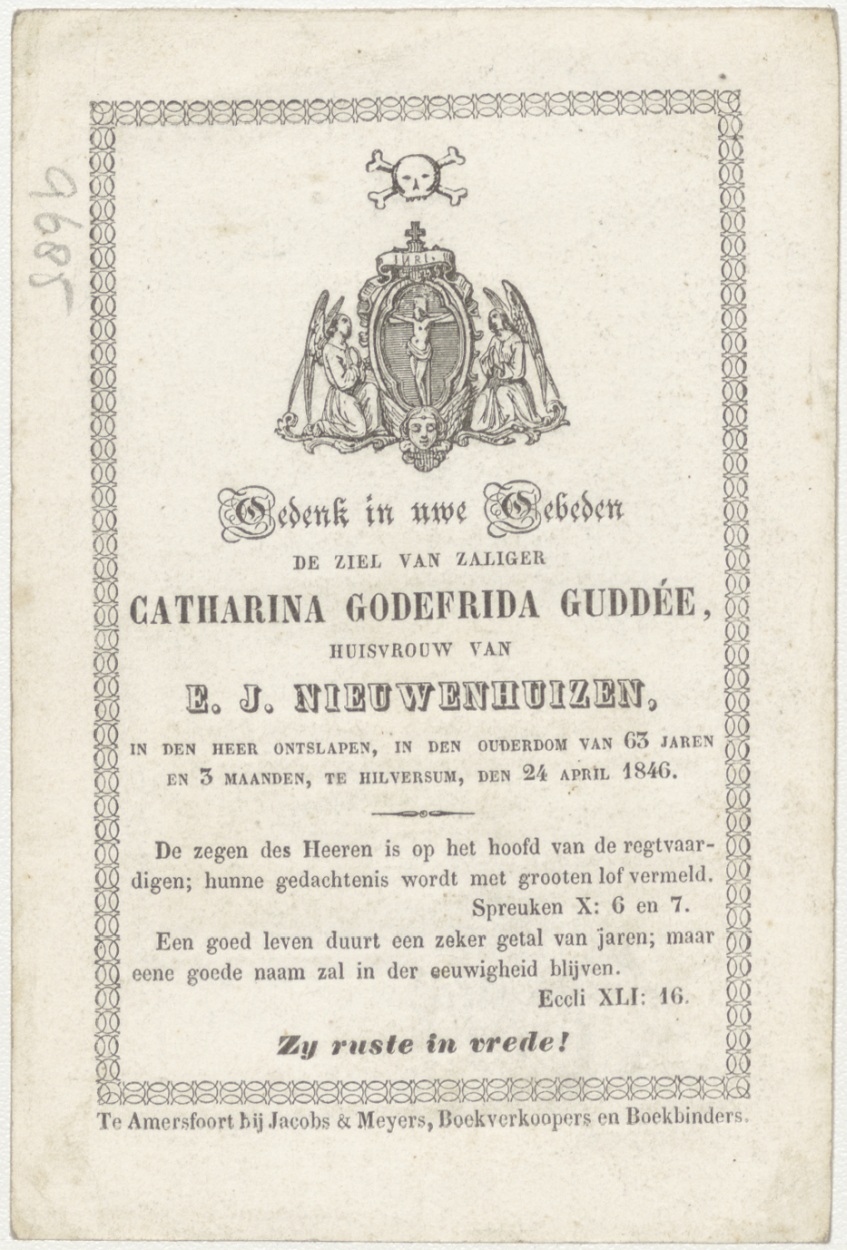 Maria met Christuskind (Frans), kz. Bid voor ziel Guddé-Nieuwenhuizen (+1846) Hilversum
