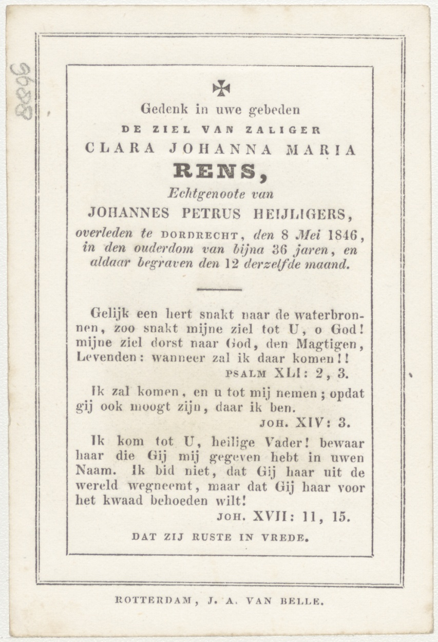 H. Rosalie, kz. Bid voor ziel Rens (+1846) Dordrecht