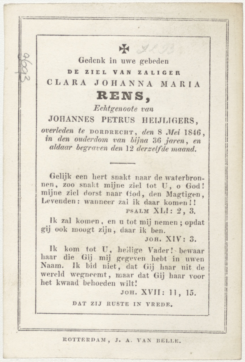 H. Therese (Frans), kz. Bid voor ziel Rens (+1846) Dordrecht