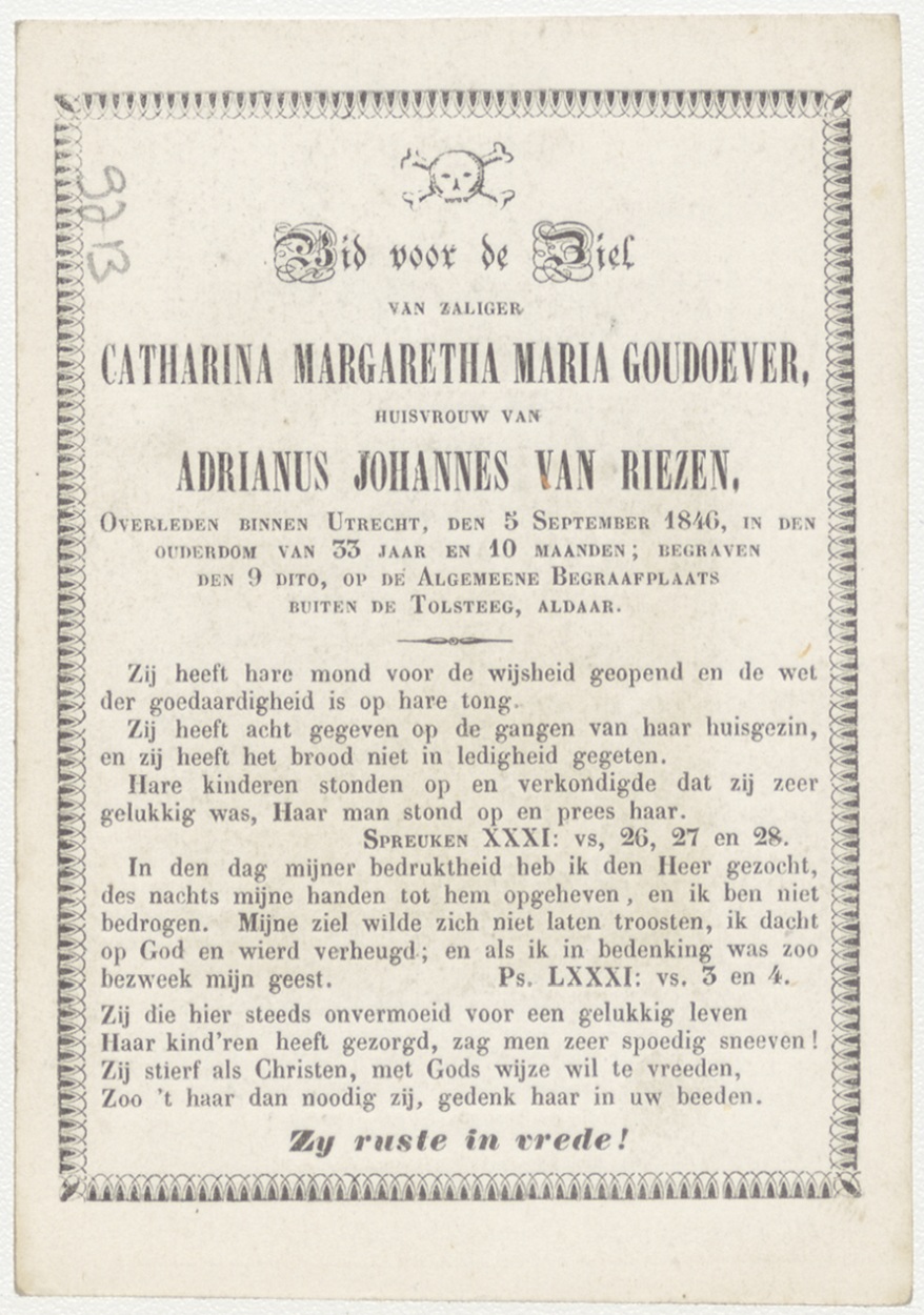 Doop van Christus in de Jordaan (Frans), kz. Bid voor ziel Goudoever-Van Riezen (+1846) Utrecht
