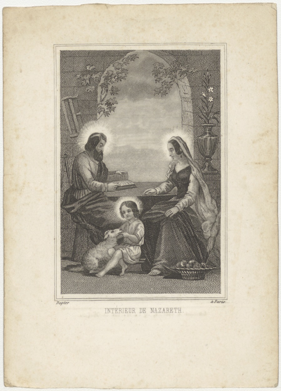 Huiselijke scène H. Familie te Nazareth (Frans), kz. Bid voor ziel Booy-Everdingen (+1847) Utrecht