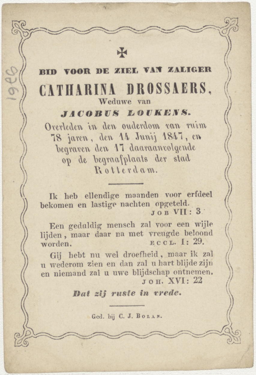 Passie, tweede statie, Christus draagt zijn kruis, kz. Bid voor ziel Drossaers (+1847) Rotterdam