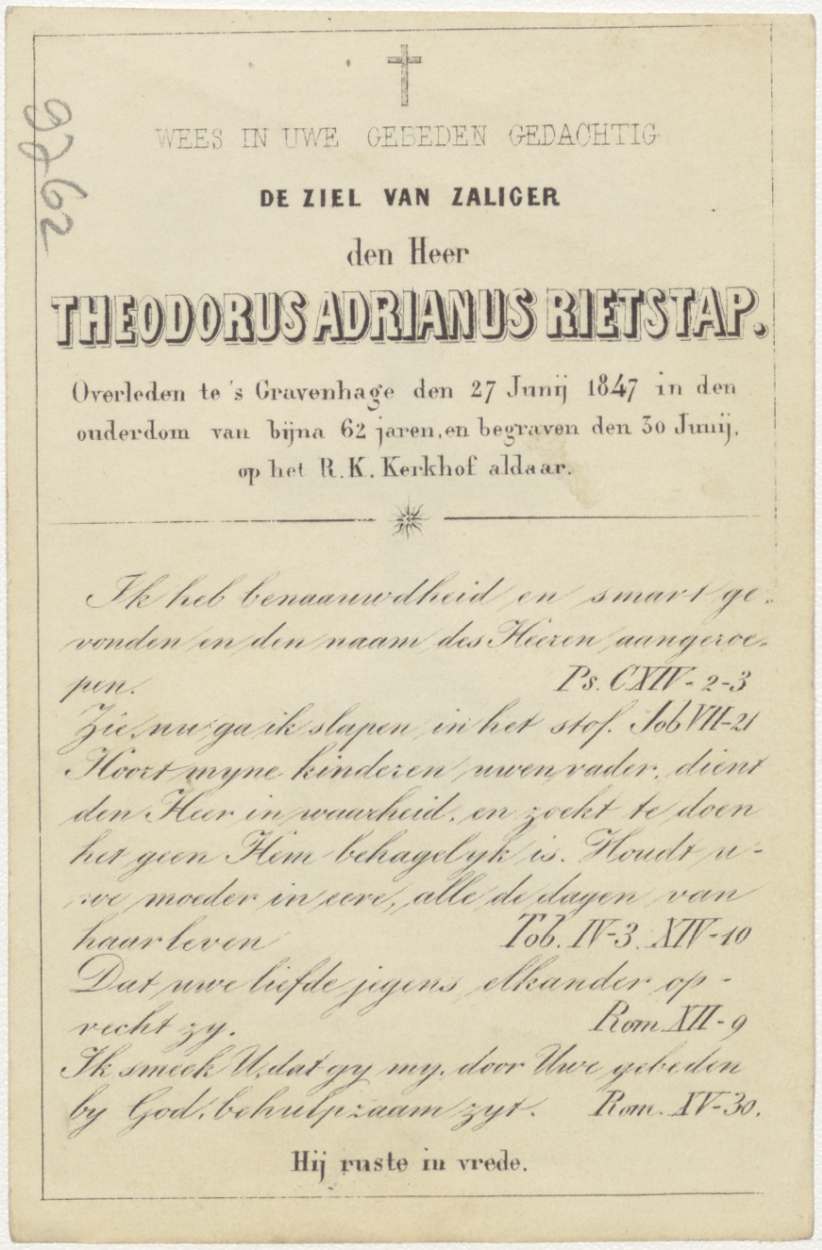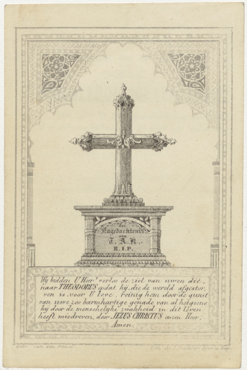 Neogotische kruis als grafmonument, kz. Bid voor ziel Rietstap (+1847) Den Haag