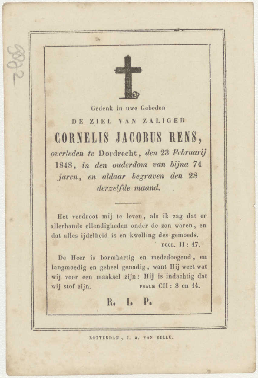 Verrijzenis van Christus (Frans), kz. Bid voor ziel Cornelis Jacobus Rens (+1848) Dordrecht