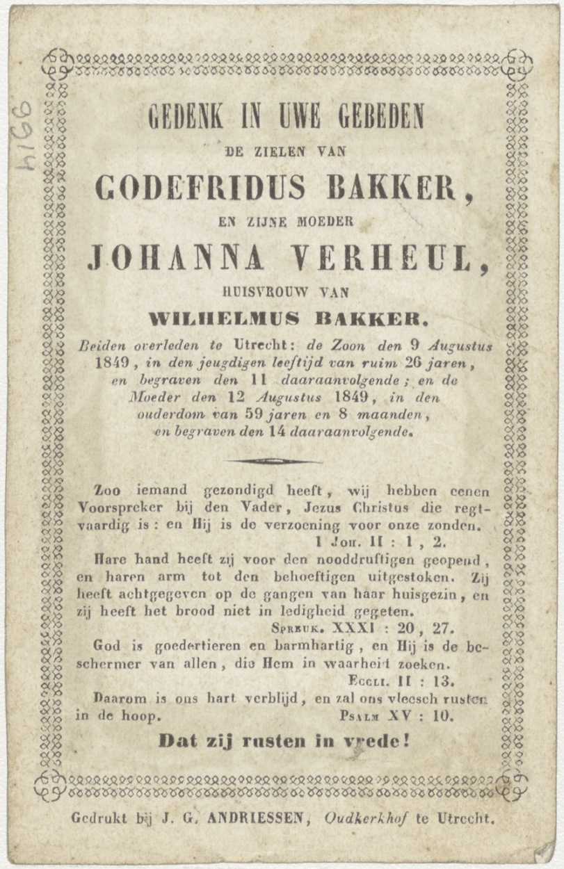 H. Maria, kz. Bid voor ziel Verheul-Bakker (+1849) Utrecht