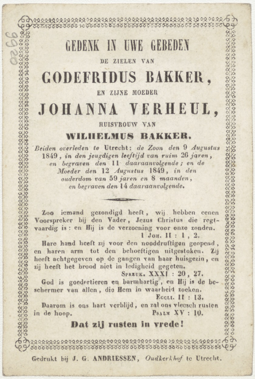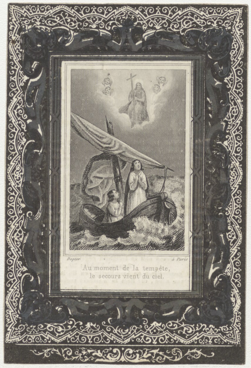 Mensen in bootje, boven Christus in de hemel, kz. Bid voor ziel Verheul-Bakker (+1849) Utrecht