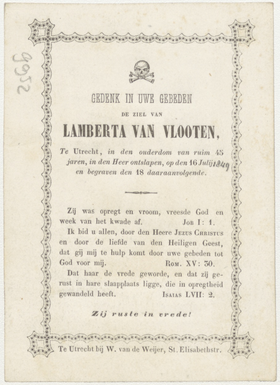 Aanbidding van het H. Sacrament (Frans), kz. Bid voor ziel Van Vlooten (+1849) Utrecht