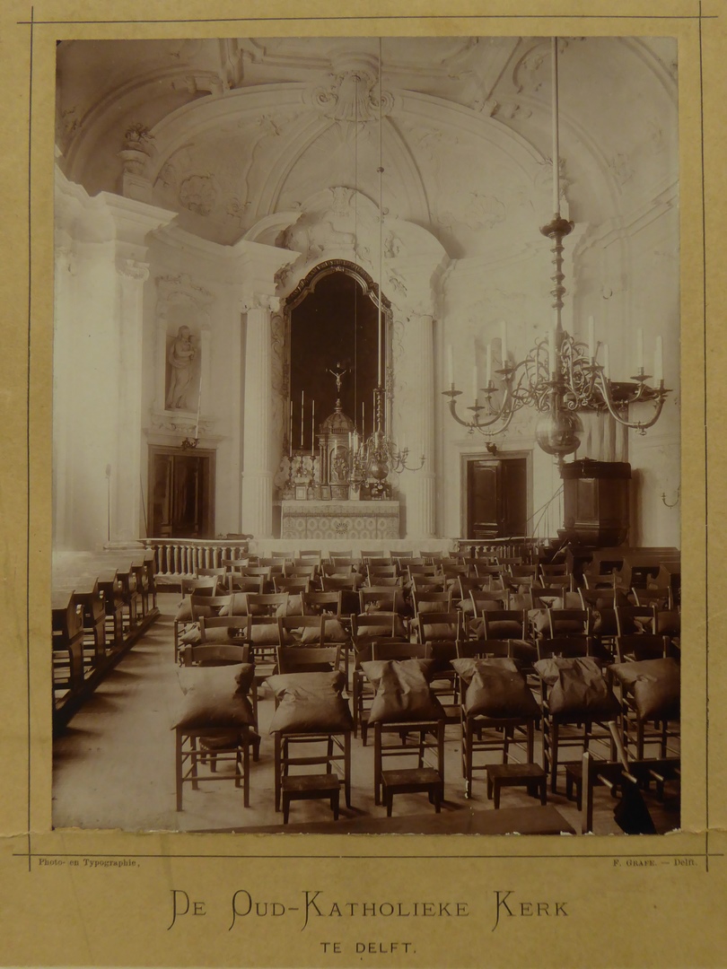 Delft, interieur van de oud-katholieke kerk, zicht naar het altaar