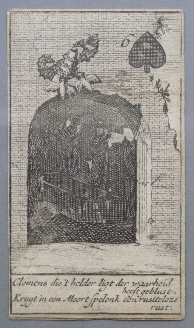 Kaartspel: Schoppen zes; Clemens die 't helder ligt der waarheid heeft geblust, ...