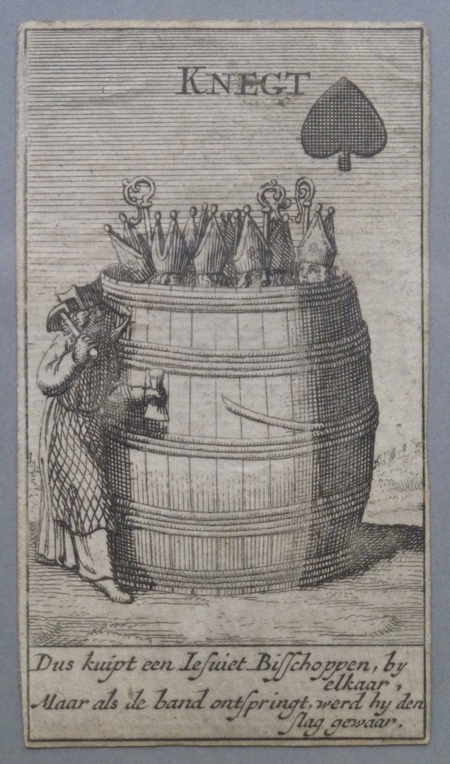 Kaartspel: Schoppen knegt; Dus kuipt een Jezuiet bisschoppen, bij elkaar, ...
