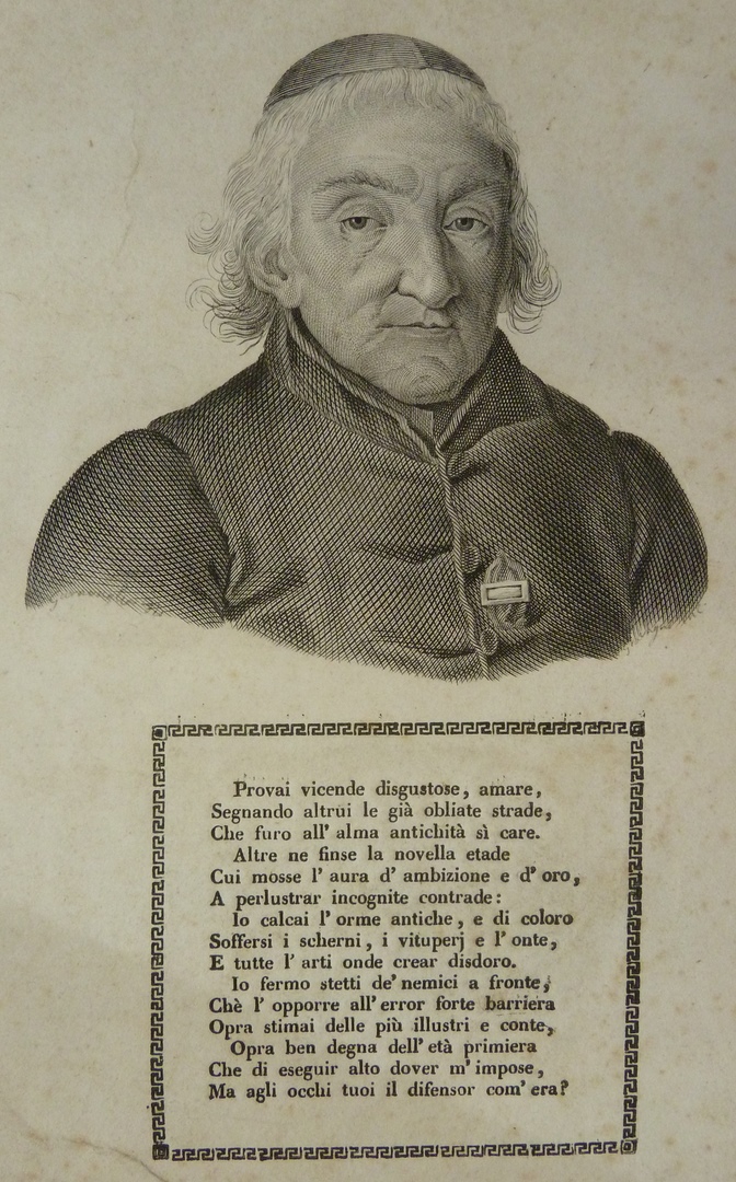 Portret van de Italiaanse theoloog en jansenist Pietro Tamburini (1737-1827). Onder het portret staat een deel uit het Italiaanse epische gedicht 'Orlando Furioso' (vertaald als 'Razende Roeland') geschreven door Ludovico Ariosto.