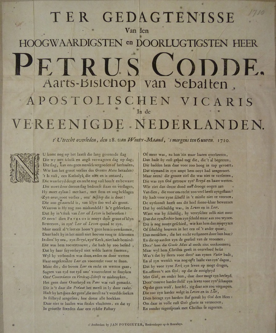 Ter gedagtenisse ... Petrus Codde ... Nu komt op het laatst die lang gevreesde slag ...