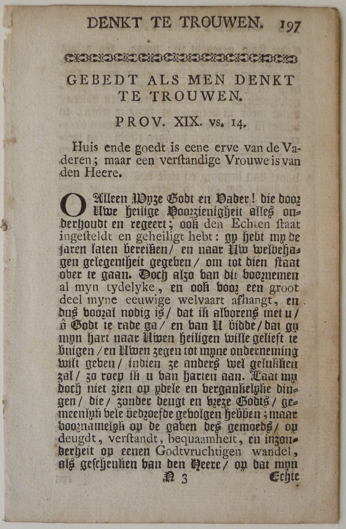 Vier bladzijden uit een boek met "... gebedt als men denkt te trouwen. ..."