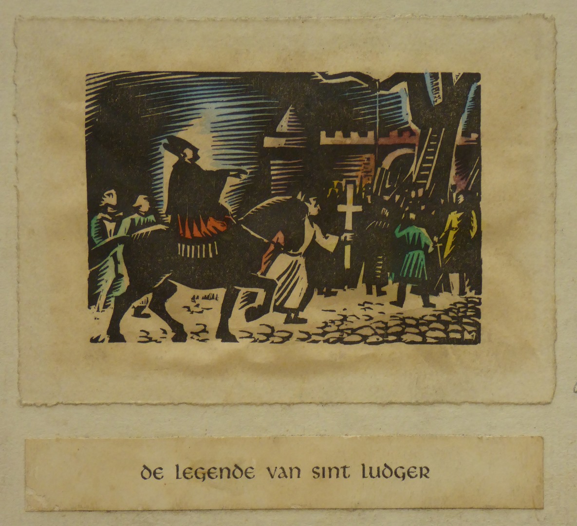 Houtsneden uit Helden Gods van E. Lagerwey (serie): De legende van St. Ludger, ingekleurd