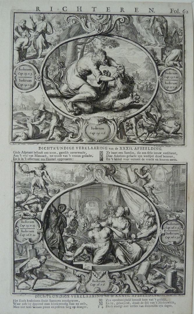 Serie 'Alle Voornaemste Historien .. Testaments': Simson verscheurt een jonge leeuw (Re.14:6)
