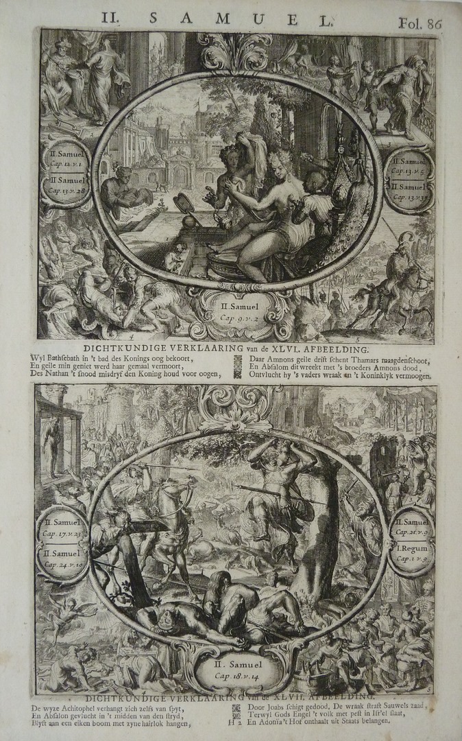 Serie 'Alle Voornaemste Historien .. Testaments': Dood van Absalom (2 Sam.18:14)