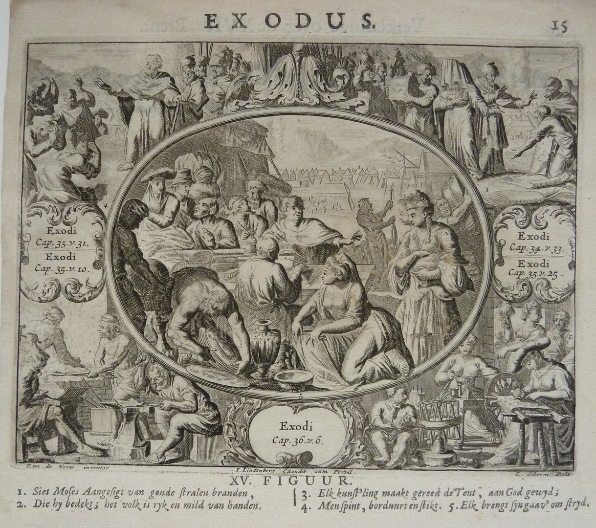 Serie 'Alle Voornaemste Historien .. Testaments': Bouw van de tent der samenkomst (Ex.36:6)