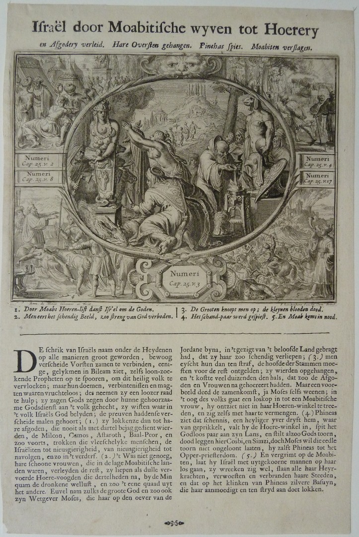 Serie 'Alle Voornaemste Historien .. Testaments': Israëliten plegen te Sittim ontucht en afgoderij