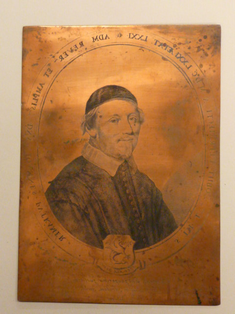 Koperplaat met gravure van Joannes Putkamer in ovaal met rondschrift