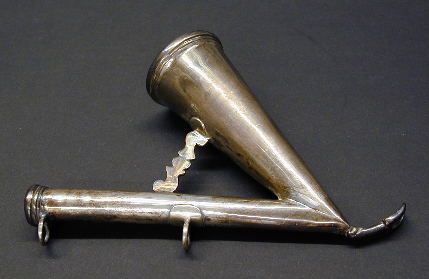 Kaarsendover, kegelvormig met pijpje waaraan stok kan worden bevestigd