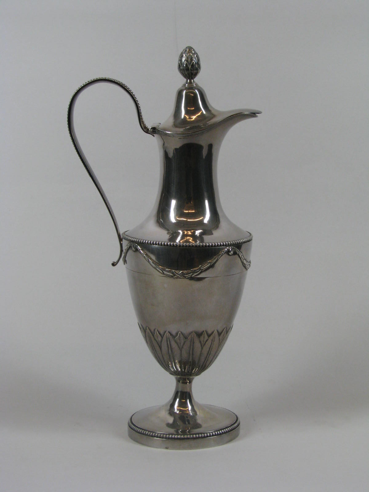 Schenkkan, balustervormig, op onderkant van buik rozet van laurierbladeren