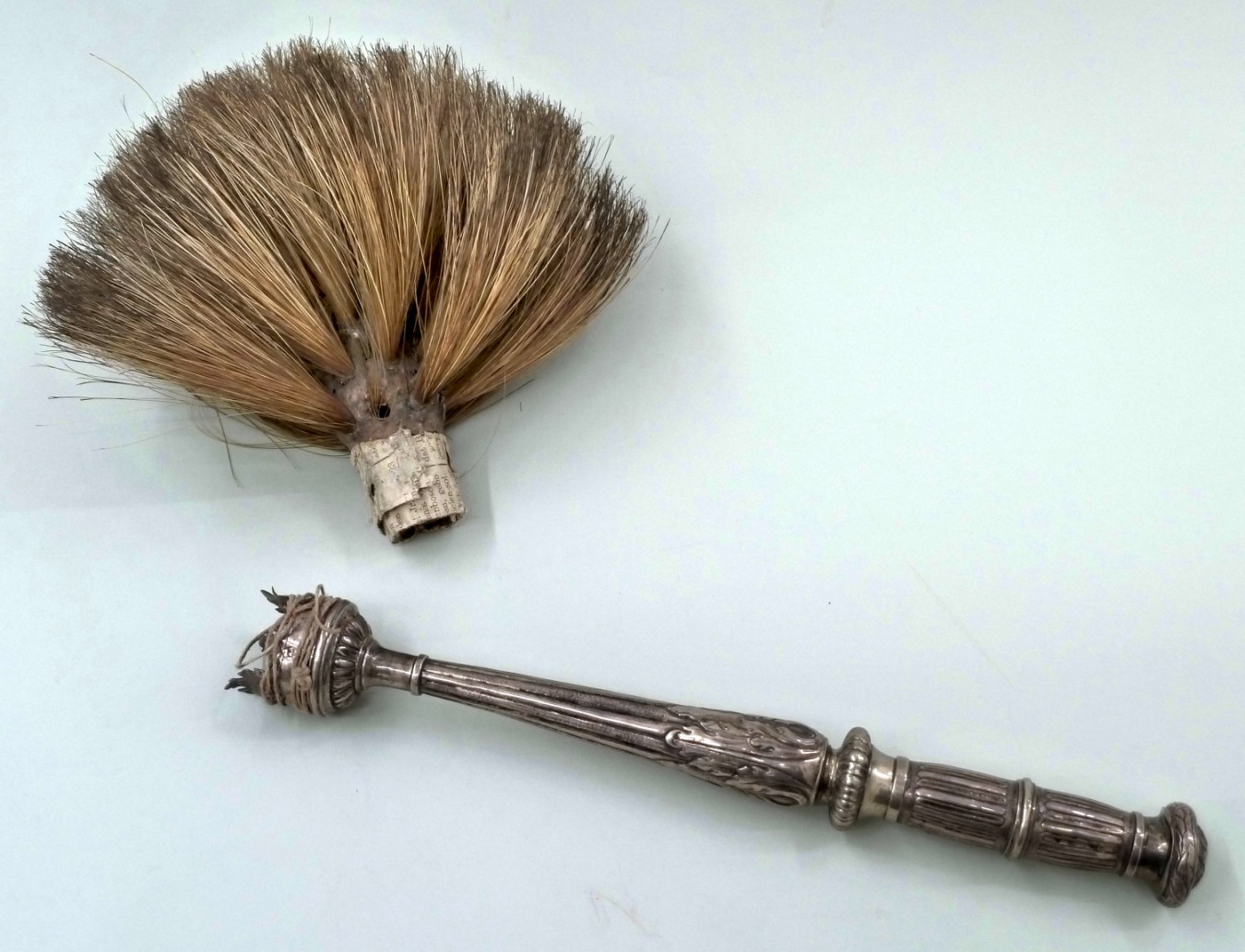Wijwaterkwast met zilveren handvat, versierd met palmrozetten, vernauwingen en kranen