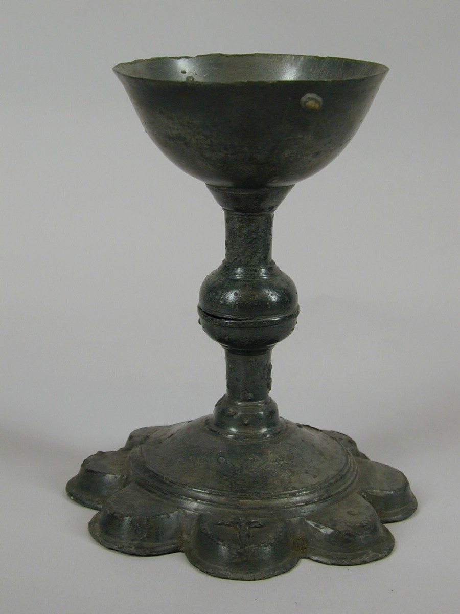 Miskelk op achtlobbige voet waarop Christusfiguur