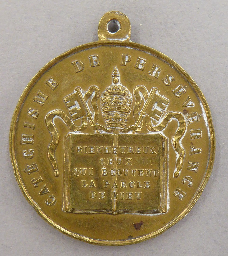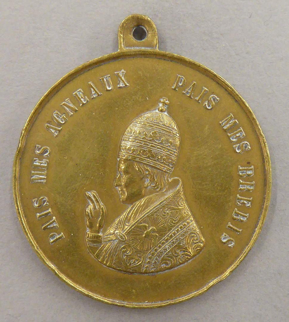 Pauspenning met portret, randschrift, kz. opengeslagen boek met pauselijke waardigheidstekens