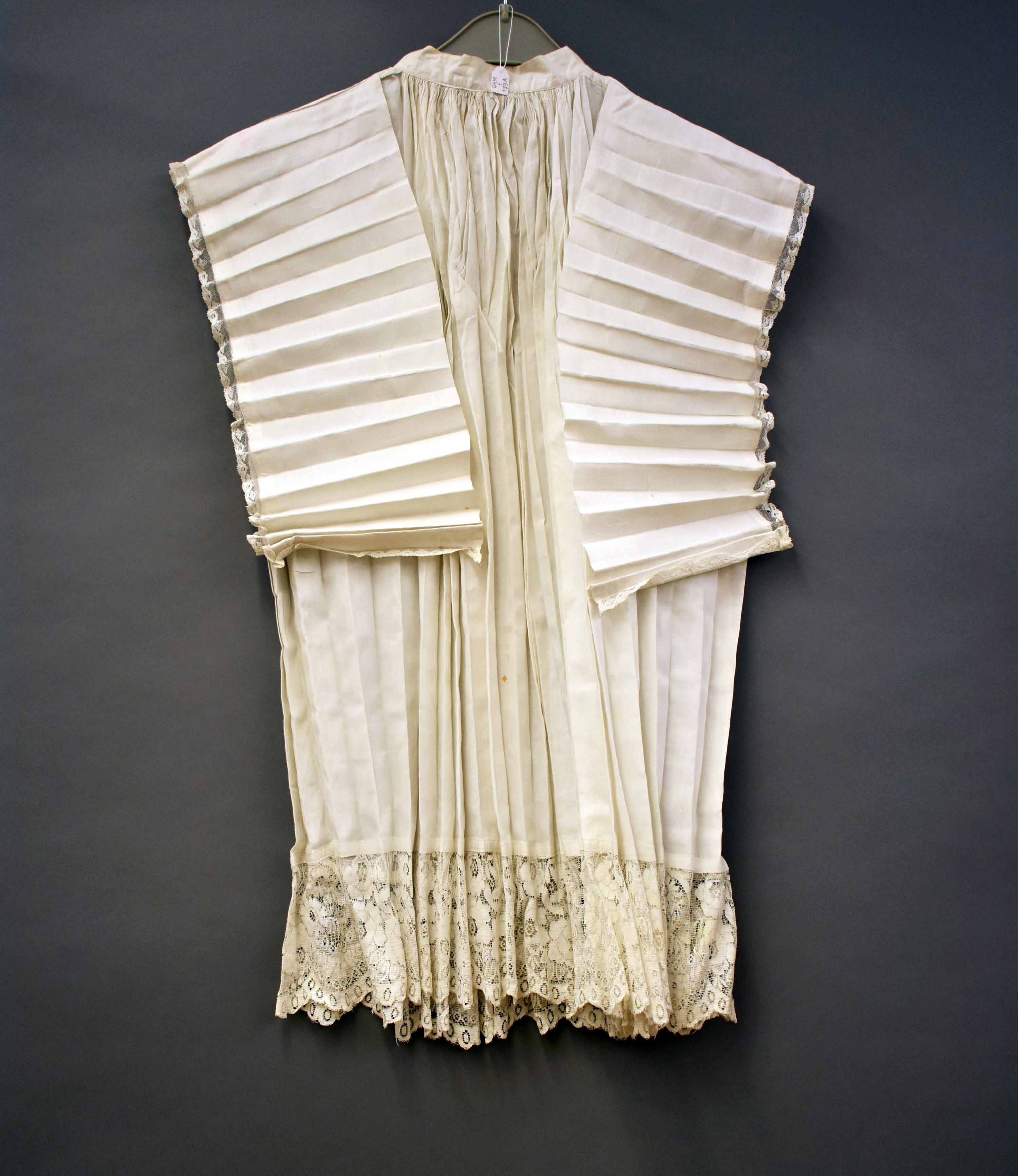 Superplie voor misdienaar met bijbehorende vleugelstukken, afgezet met strook machinale kant