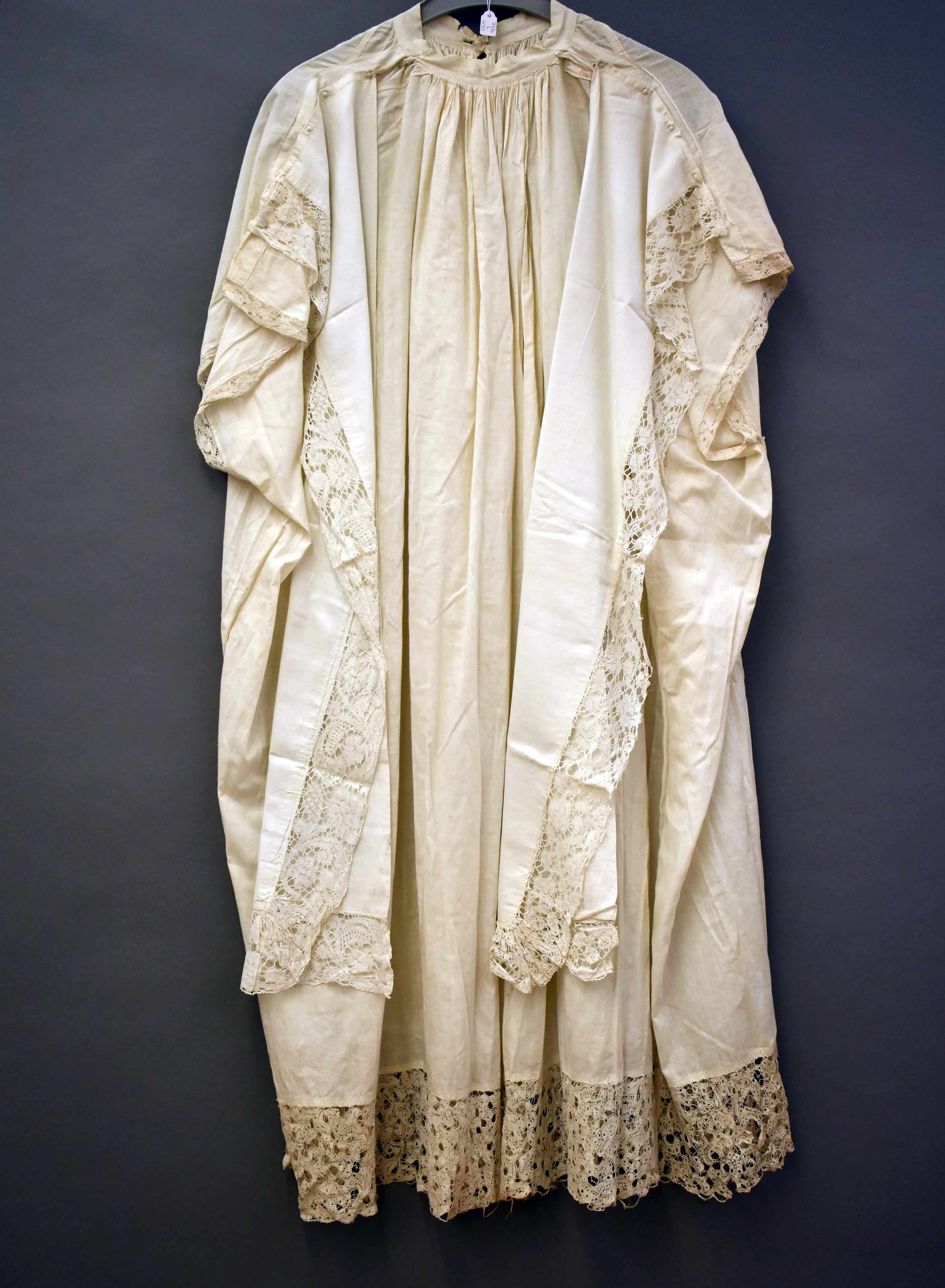 Superplie voor misdienaar zonder bijbehorende vleugelstukken, afgezet met strook machinale kant