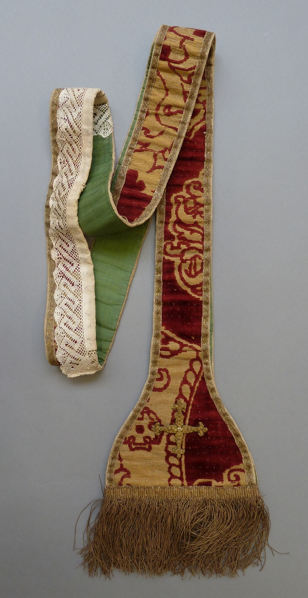 Rode stola met granaatappelpatroon in een goudkleurig fond