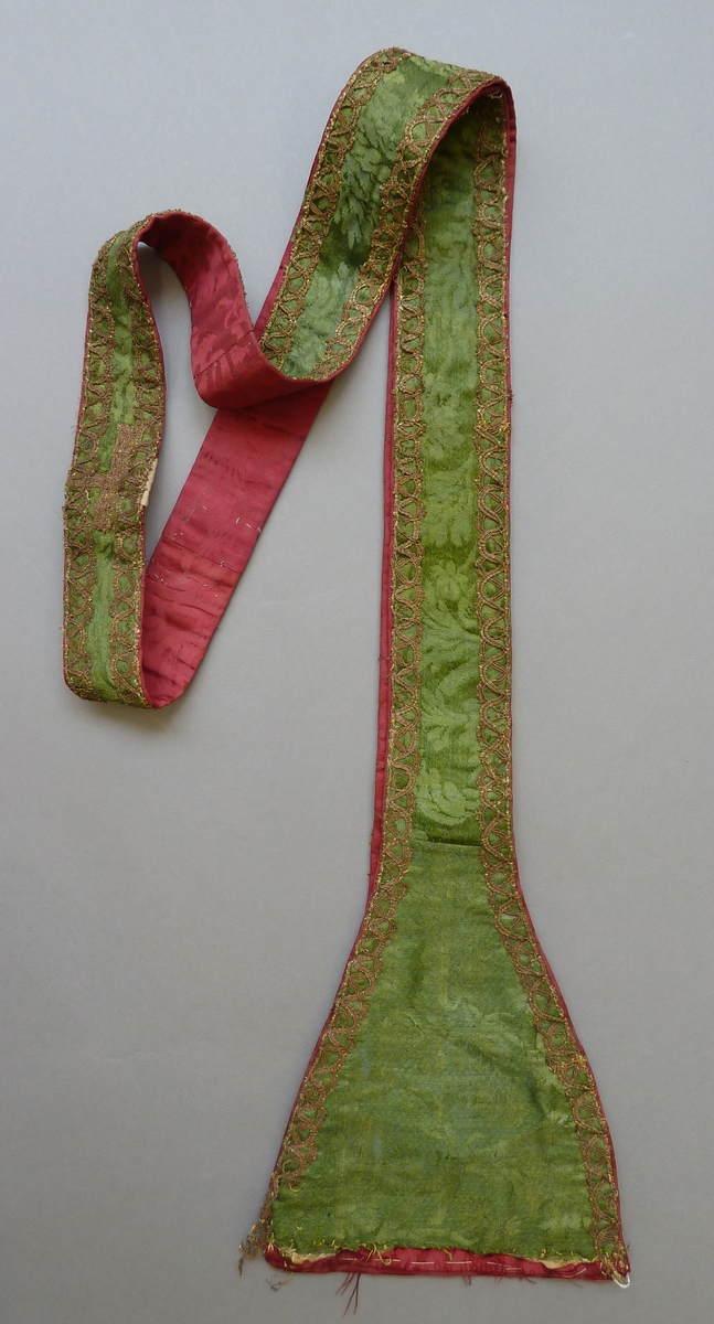 Groene stola met ingeweven rankenmotief, franje ontbreekt