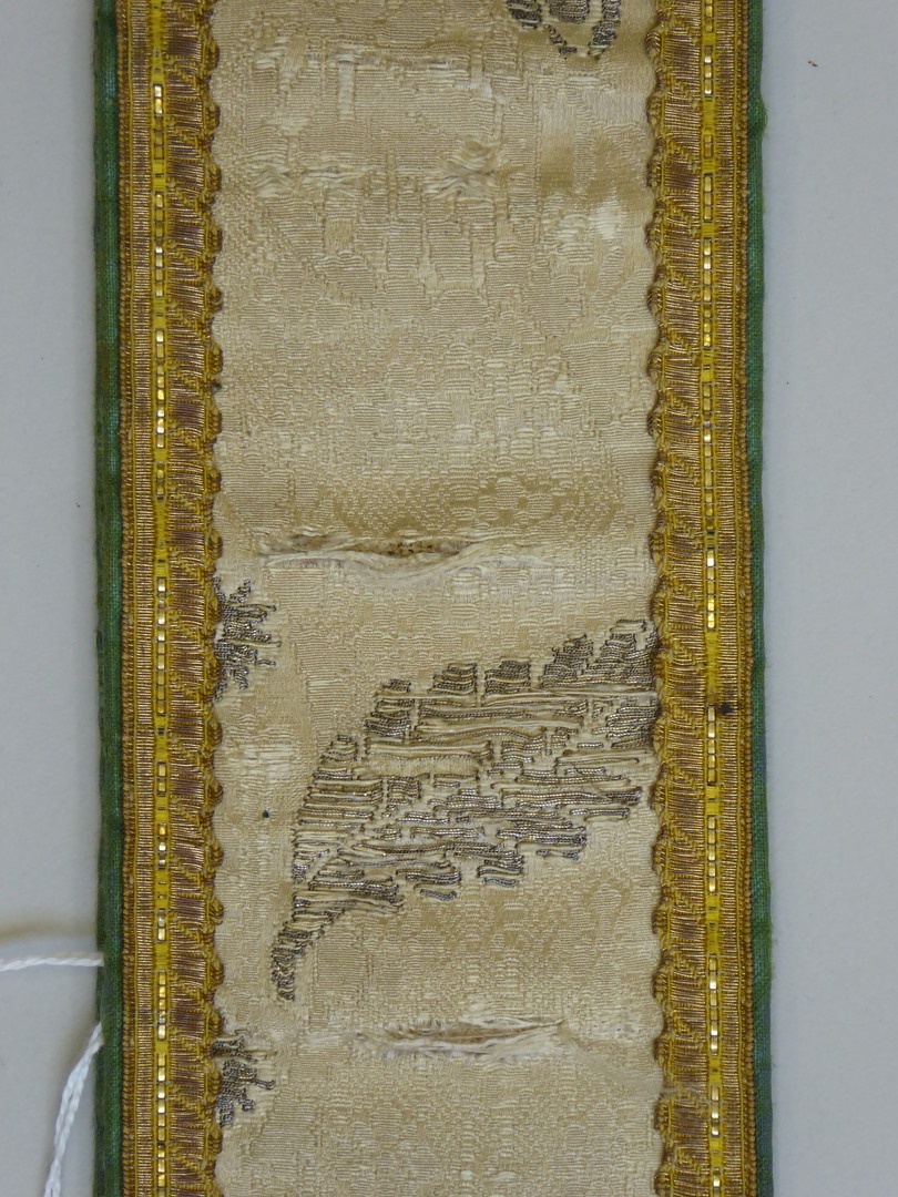 Witte stola van zilverbrokaat met ingeweven florale motieven