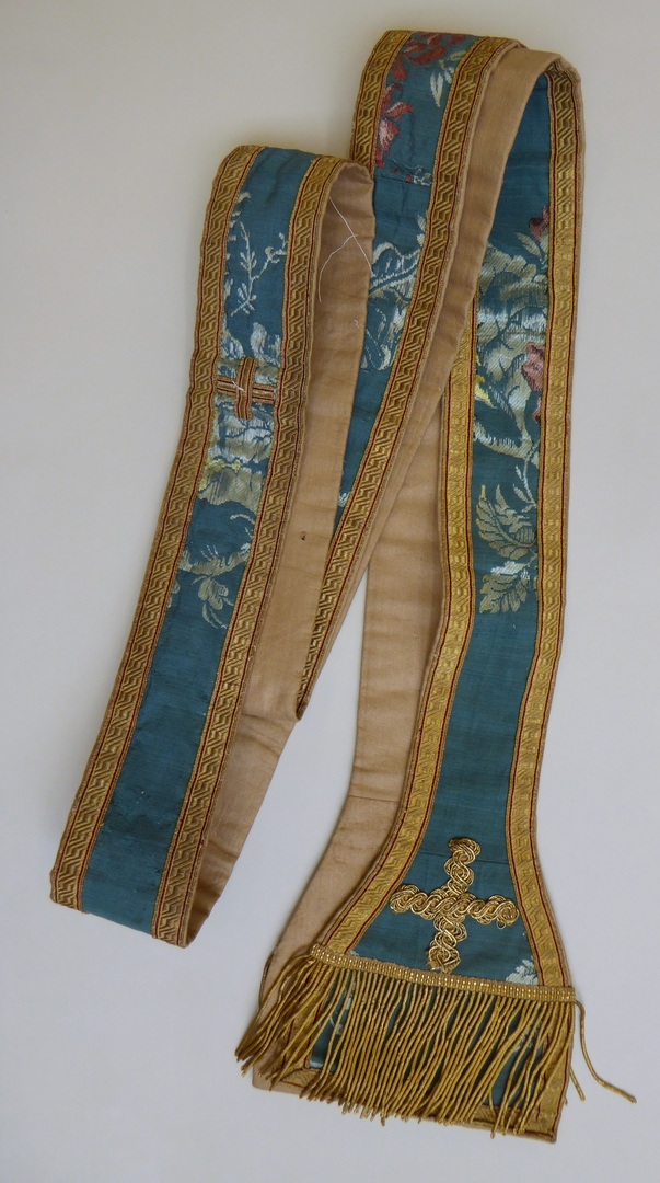 Blauwgroene stola van lampas met bloemranken