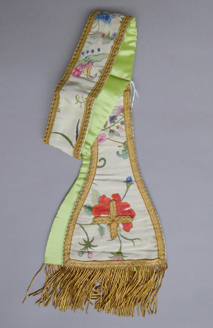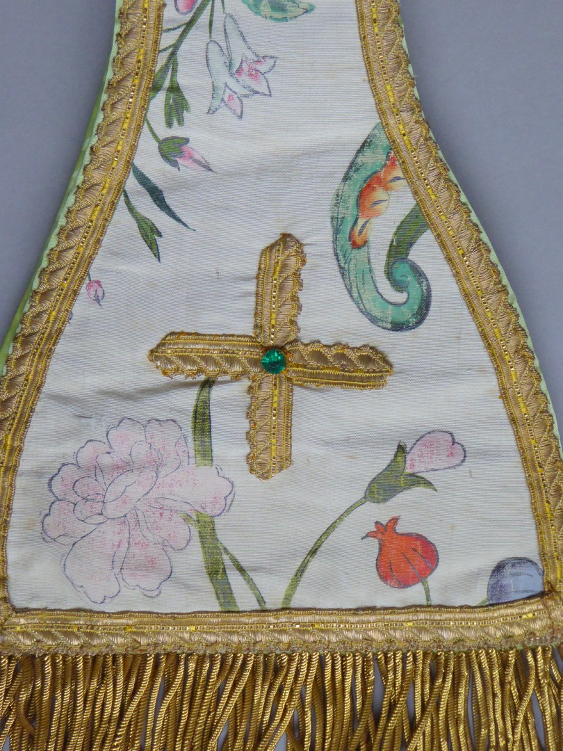 Witte manipel met geschilderde bloemranken