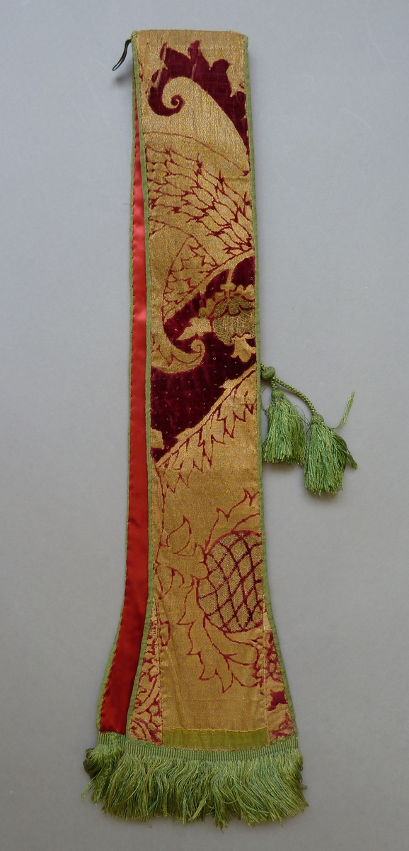 Rode manipel met granaatappel- en distelpatroon