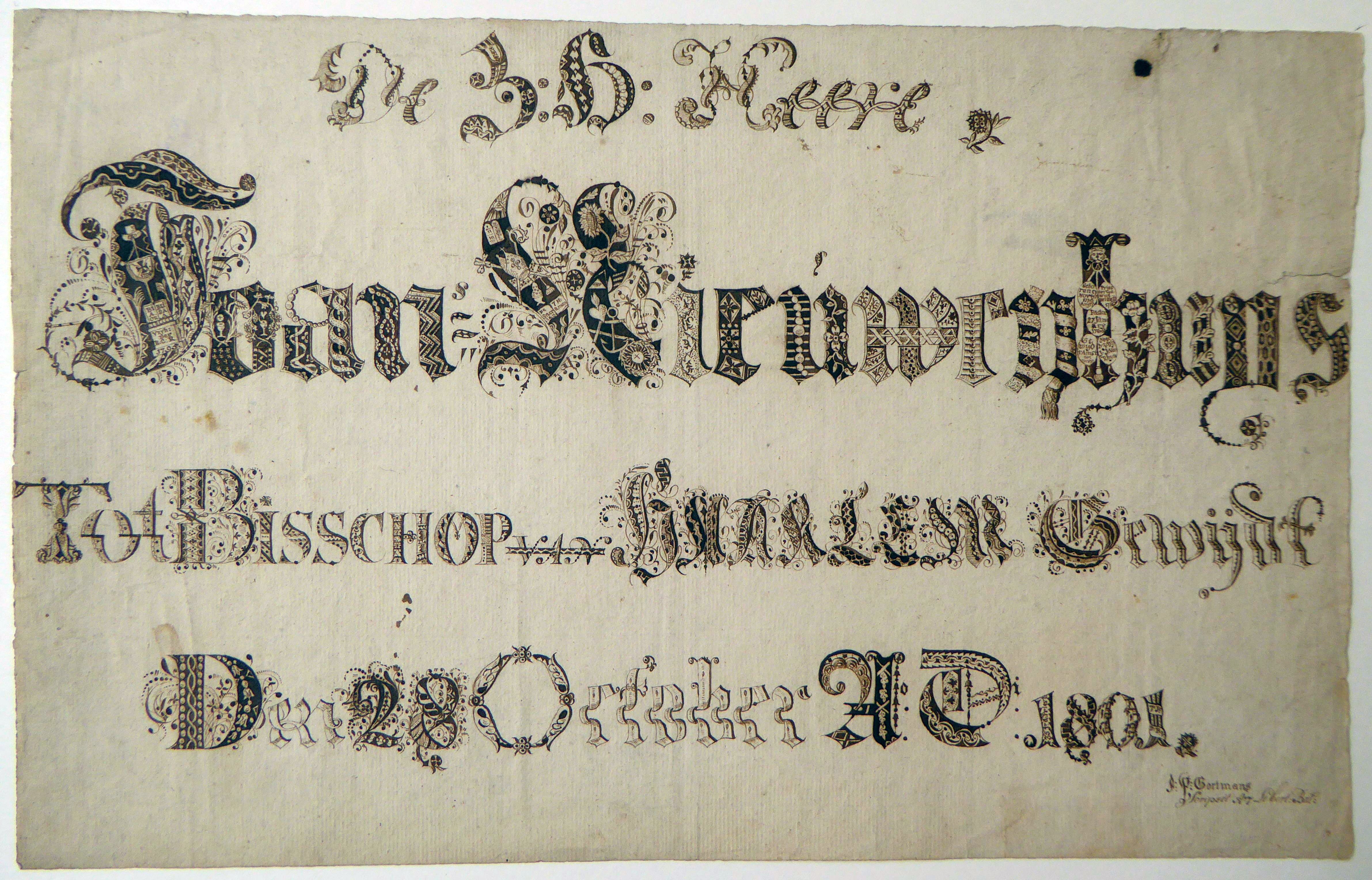 Benoeming van Johannes Nieuwenhuis tot bisschop van Haarlem op 28 oktober 1801