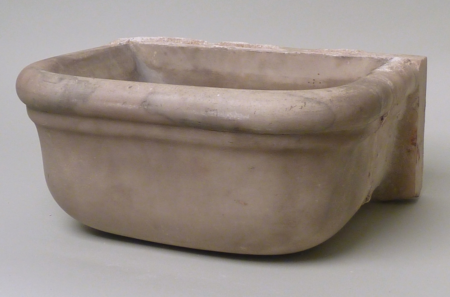 Wijwaterbakje of doopvontje versierd met gladde overhangende rand aan de bovenkant